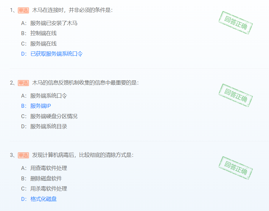 通过本次实验,我掌握了木马的工作原理,并且学会了如何清理木马。在日常的生活中,当我们发现计算机有异常情况,如经常自动重启,密码信息泄露时没救应该怀疑是否中了木马,并及时进行清理。
