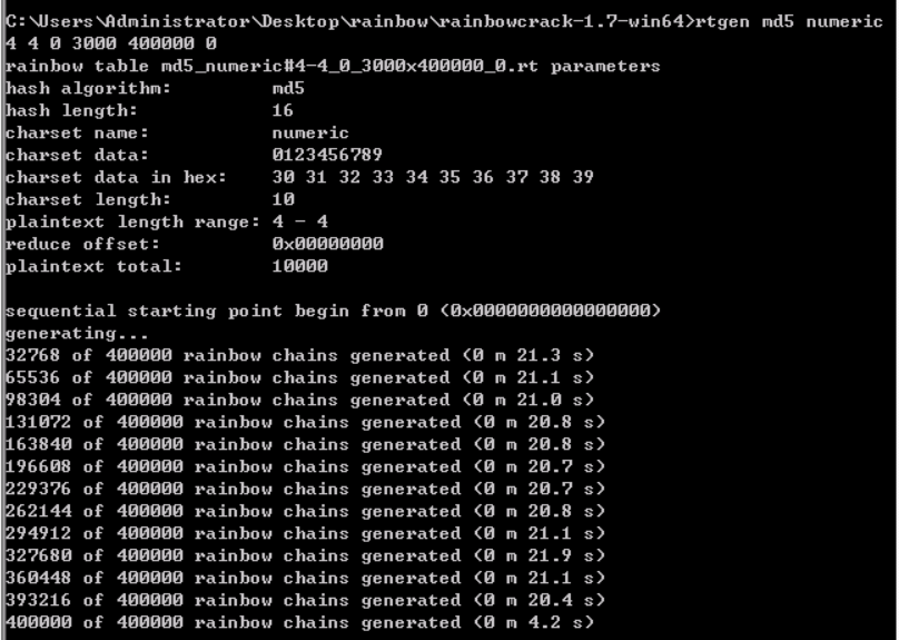 //显示了生成相应彩虹表所用时间