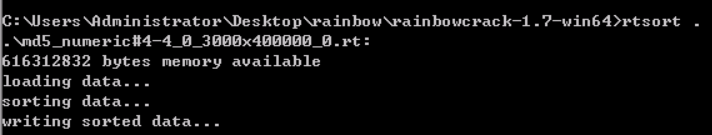 切勿中断rtsort程序; 否则被分类的彩虹表可能会被损坏。