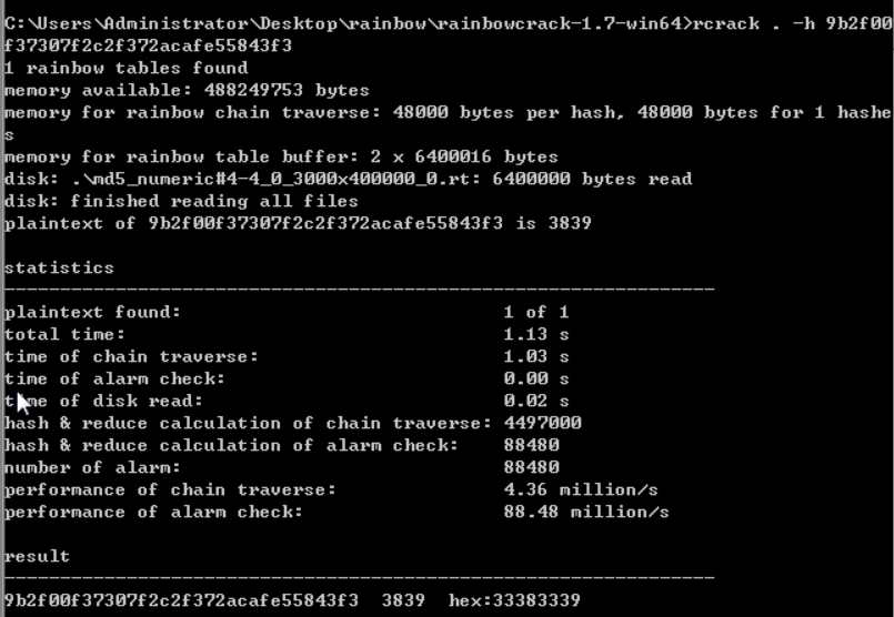 //彩虹表破解成功