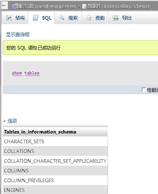 在phpmyadmin中,在左侧点击information_schema数据库。