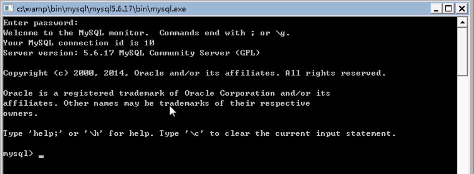 会弹出一个命令行窗口,这就是mysql客户端,此时要求输入密码,由于root的密码为空,直接回车即可。