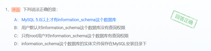 每一个目录对应数据库中的一个数据库,在数据库中执行show databases;的时候,可以看到存在5个数据库,正是少了information_schema这个数据库。