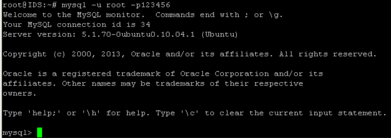 root@IDS:~# mysql -u root -p123456 #登录mysql
