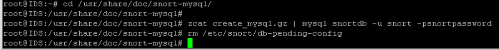 # zcat create_mysql.gz | mysql snortdb -u snort -psnortpassword