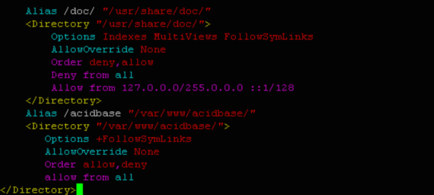 在文件底部</VirtualHost>一行之前加入acidbase相关内容(上图红框框部分)