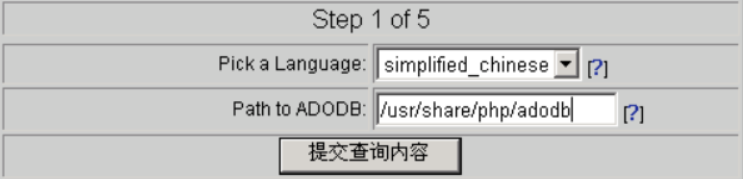 输入ADODB的路径“/usr/share/php/adodb”,单击提交按钮。