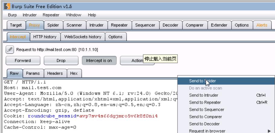 1、配置好IE代理,截取数据包。