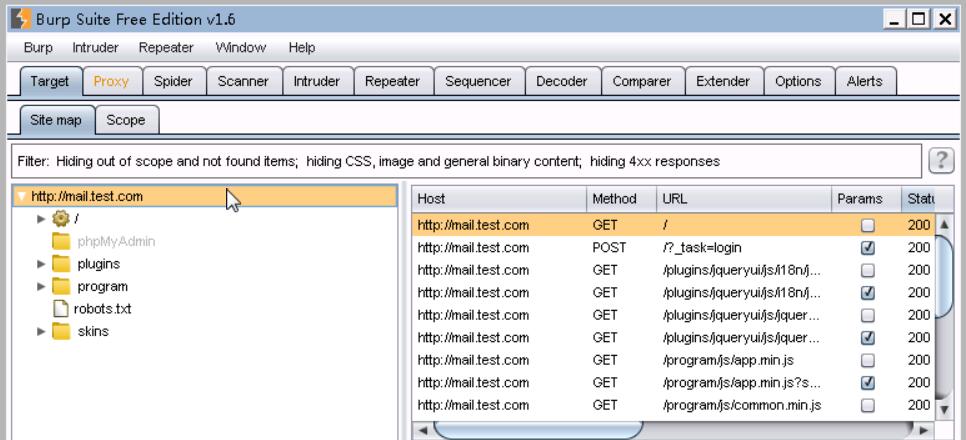 这里我们先使用burpsuite对该站点进行目录扫描。