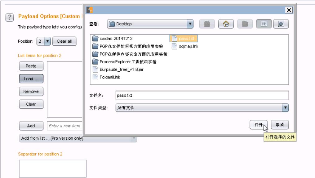 11、加载桌面上一个密码字典pass.txt,配置如下。