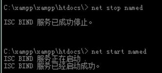 24、重启下dns服务,输入命令:net stop named和net start named,回车。