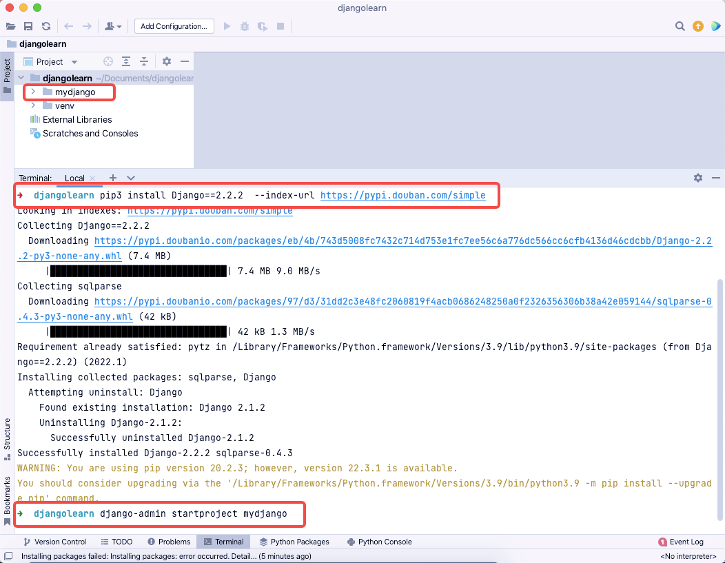在终端安装Django包