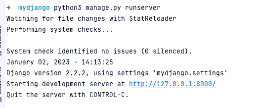 python3 manage.py runserver,后面也可以接端口如python3 manage.py runserver 8001 ,若不接默认8000