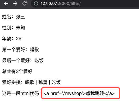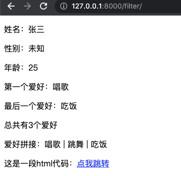 {{hobby | last}} --取hobby列表变量的最后一个值