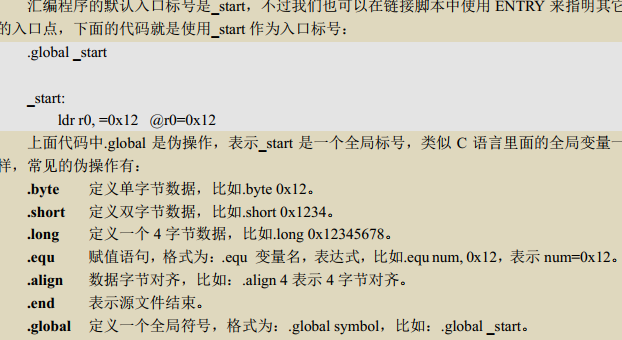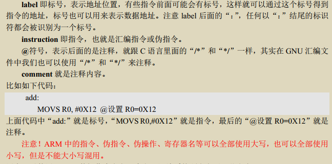 编写的是 ARM汇编,编译使用的 GCC 交叉编译器,所以我们的汇编代码要符合 GNU 语法。