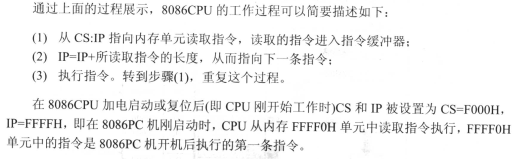 8086cpu将从内存:(cs*16+ip)单元开始读取指令并进行。