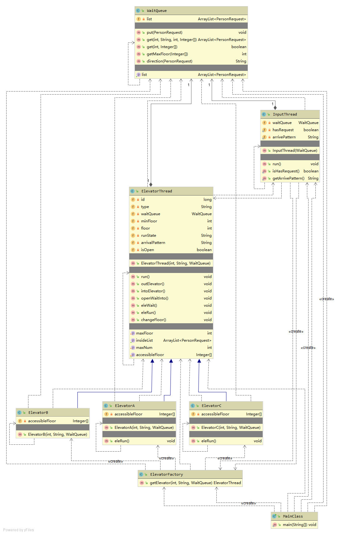 在本单元作业中,我没有设计调度器,所以我只能谈一下可能的思路:输入线程和调度器共享一个请求队列,每个电梯都有一个等待队列,由调度器进行分配,电梯只处理自己的等待队列的请求。调度器的分配策略:把请求r1分配给距离该请求最近且运行方向相同的电梯的等待队列。如果该电梯等待队列已满,则比较请求r1与等待队列中请求的出发楼层,如果等待队列中有请求r2出发楼层距离电梯更远,则将请求r2移出,重新加入请求队列,而r1加入电梯的等待队列。当请求队列为空或者所有电梯的等待队列满的时候,调度器线程等待。当输入线程结束或当有请求出电梯的时候,唤醒调度器线程。