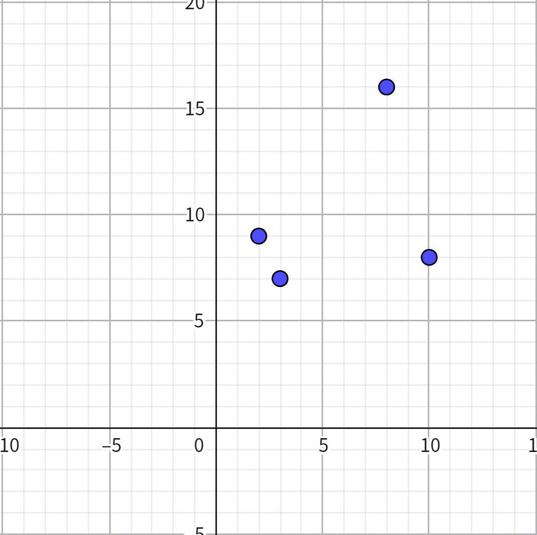 其中红线为斜率为负数的线,容易知道点 \((x_i,v_i)\) 与点 \((x_j,v_j)\) 所连成的线的斜率为 \(\frac{x_j-x_i}{v_j-v_i}\),注意到他们相遇的时间与斜率互为相反数,即若斜率为负数,则相遇的时间为正数,也就是两人会相遇。