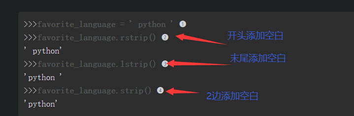 打印这个人名,以显示其开头和末尾的空白。然后,分别使用剔除函数lstrip()、rstrip()和strip()对人名进行处理,并将结果打印出来。