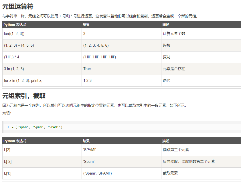 3. 与整数和字符串一样,元组可以作为字典的键,列表则永远不能作为字典的键使用。