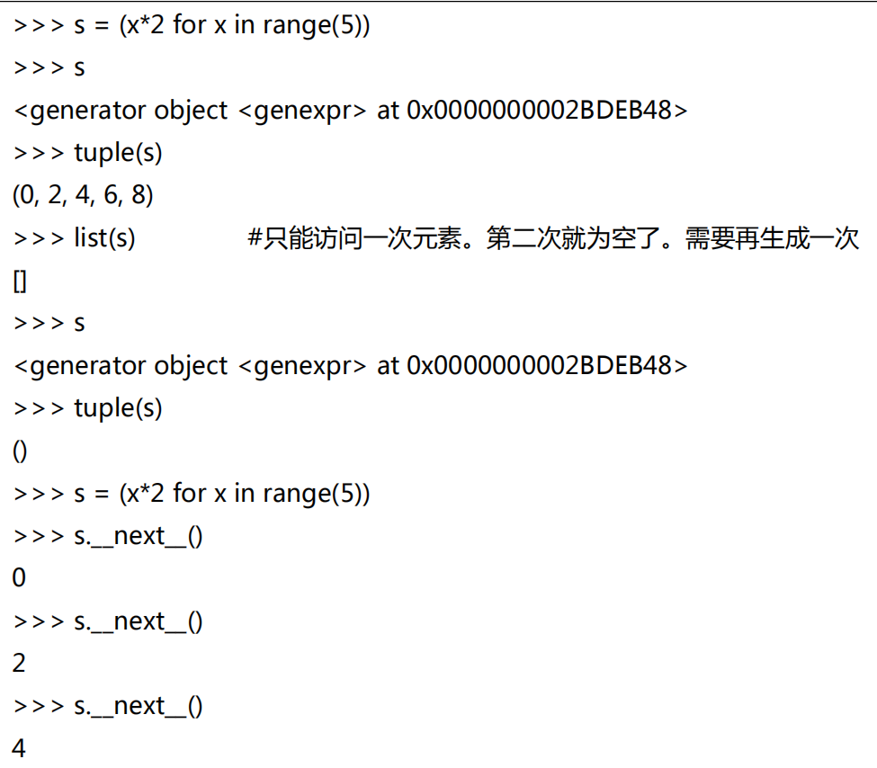 果需要重新访问其中的元素,必须重新创建该生成器对象。