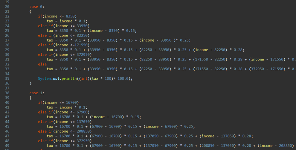 这一题完完全全是学C语言时的思维模式,通篇if-else语句进行输入判断(惨不忍睹)。输入运用了字符串,用于输入大小写字母,再用.charAt将字符串中的字符提取出来,在if语句里进行单个比较。源码可以运用switch语句进行筛选,然后输出相应的数字,这样可以降低一些圈复杂度。