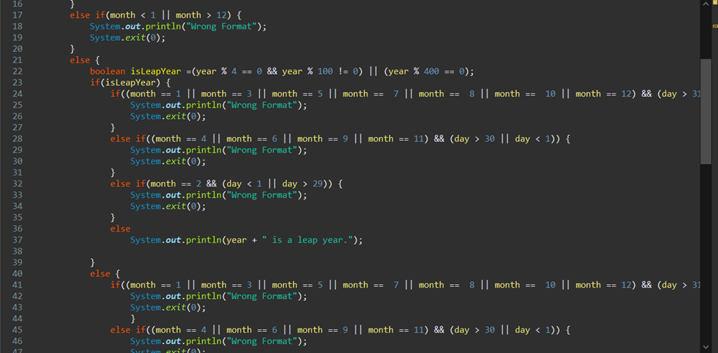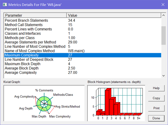 三道题都与日期相关,有一定的相似性,都涉及到大月小月的天数,闰年与非闰年里2月的天数两个关键要素。三道题中题判断闰年(Boolean类型),判断二月天数,判断大小月的天数,相关计算都使用了if-else语句, if-else多次嵌套,这部分判断日期代码几乎一样。虽说写的时候逻辑思路很清晰,但这样写导致代码有好多地方都是重复的,提交PTA检测时也有多次运行超时。记得老师说过,代码有好多地方重复的话说明代码出了问题。第一次做的时候并没有引起重视,想着只要做出来能通过编译通过PTA测试就好了,并没有考虑后面的事情——代码的维护、调试。这三道题的代码在提交前调试虽然不是很难,但耗费了很多时间去逐个排查,修改代码找错误点也非常的费劲。上SourceMonitor一测,直接好家伙,7-5的圈复杂度上到了86,其他两道题的圈复杂度也都不低。归根结底还是做的少,经验不足,思维模式还停留在学C语言的阶段,再加上还有些偷懒,没有深入去思考更简洁的算法,只会用if-else去选择。其实好多if-else可以用switch选择和while循环等代替。接下来我会利用空闲时间去优化重构这部分圈复杂度极高的代码,积累经验。