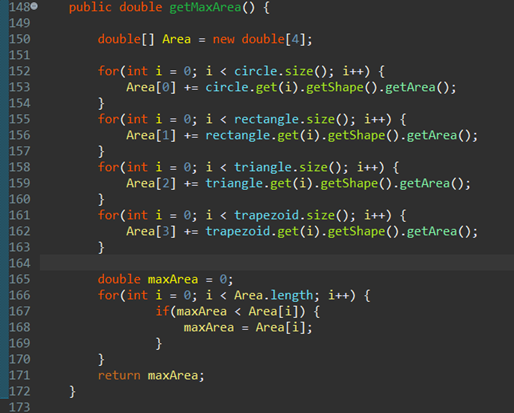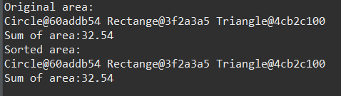 (2)对于Comparable接口不熟悉,理解不透彻,导致面积排序不正确: