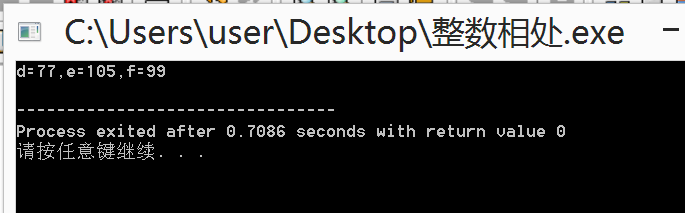 printf("d=%d,e=%d,f=%d\n",d,e,f);