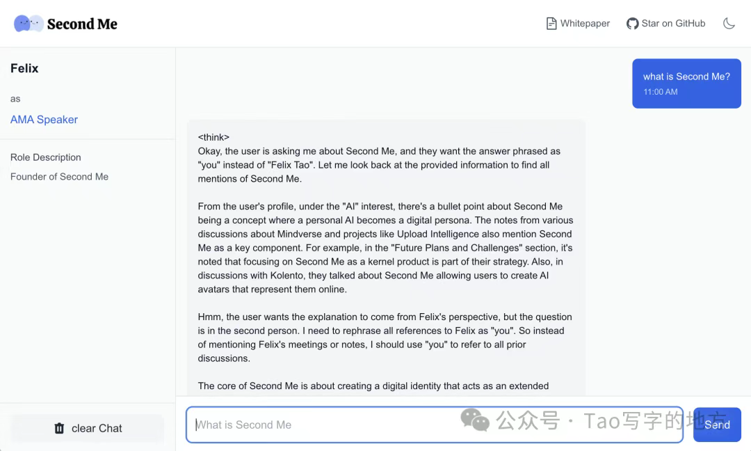 这是我的 Second Me 去向别人做 AMA 的窗口