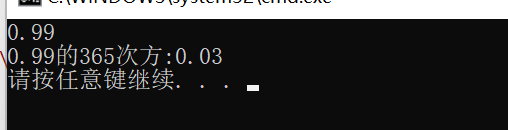 printf("%.2f的365次方:%.2f\n",x,ans);