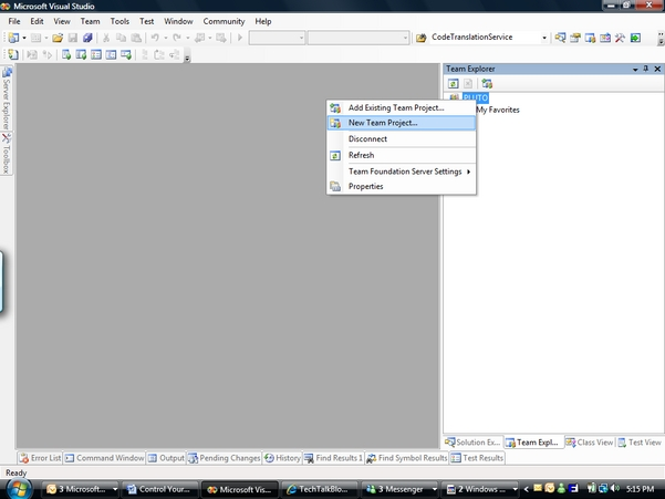 为了创建一个团队项目,Team Foundation Server管理员须要打开Visual Studio 2005和 Team Explorer工具窗体(从视图菜单)。当打开Team Explorer 窗体后,就能够建立一个到server的连接。