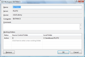 在程序猿将文件加入到版本号控制存储器之前,须要将版本号控制存储器的逻辑结构映射到本地机器上的文件系统。Team Foundation Server 引入了工作区的概念。工作区是物理位置和文件系统间的一组映射,一个文件系统与一个特殊用户和计算机组合相匹配。