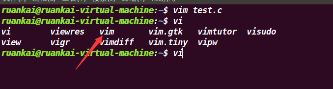 vi然后连续按两次tab键,查看有无 vim ,有的话即安装成功