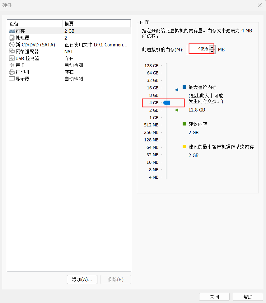 8)这里划分下内存,点击自定义硬件,调整到4g,点击关闭