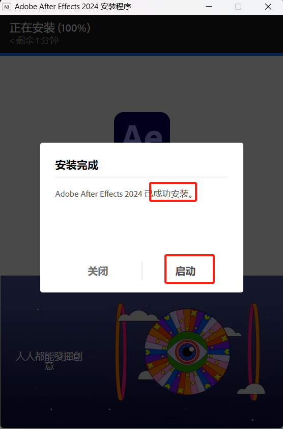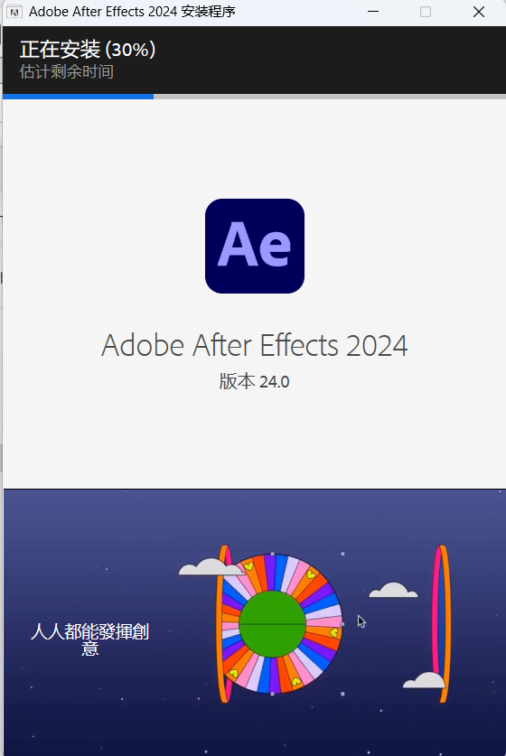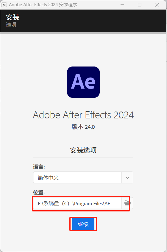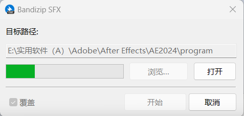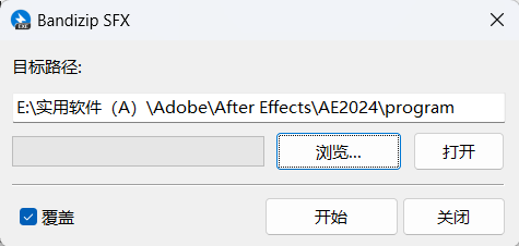 1)双击Adobe After Effects 2024 v24.0.0.55.exe安装 ,浏览设置解压地址,点击开始按钮