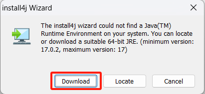 - 点击Download,下载JRE运行环境,这里需要联网下载
