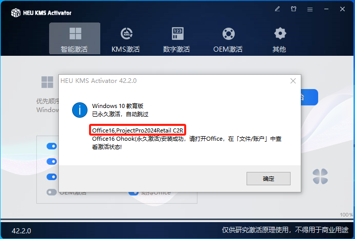 - 激活完成,弹窗激活成功