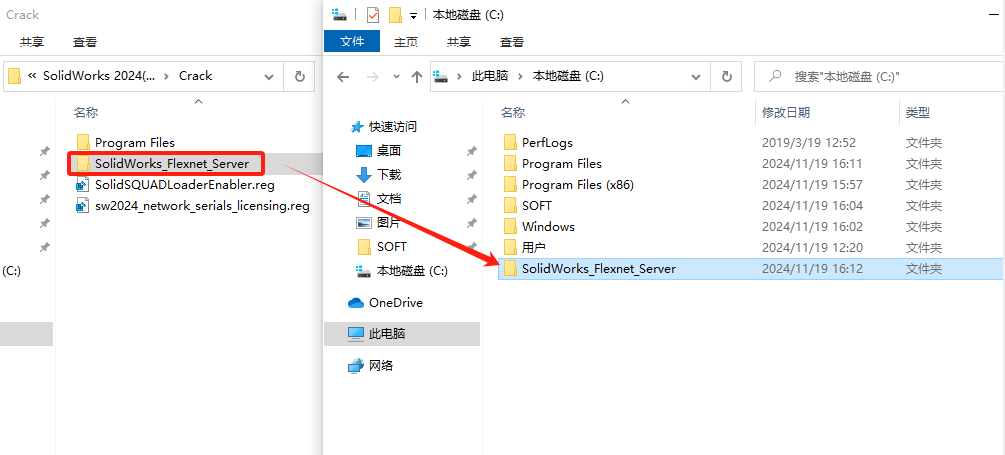 - 复制Crack内SolidWorks_Flexnet_Server文件夹至C盘根目录