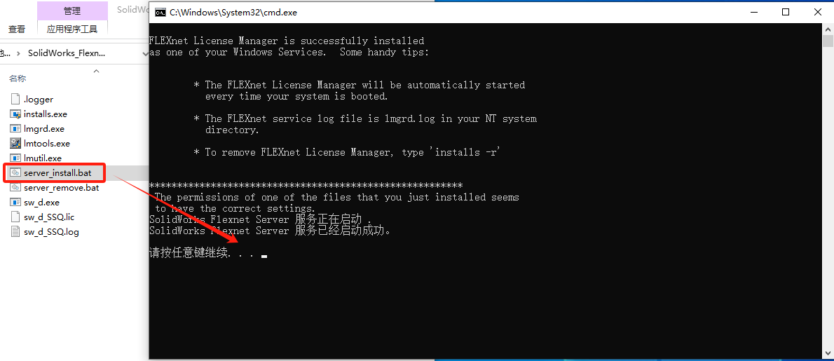 - 打开根目录文件夹,管理员执行‘server_install.bat’