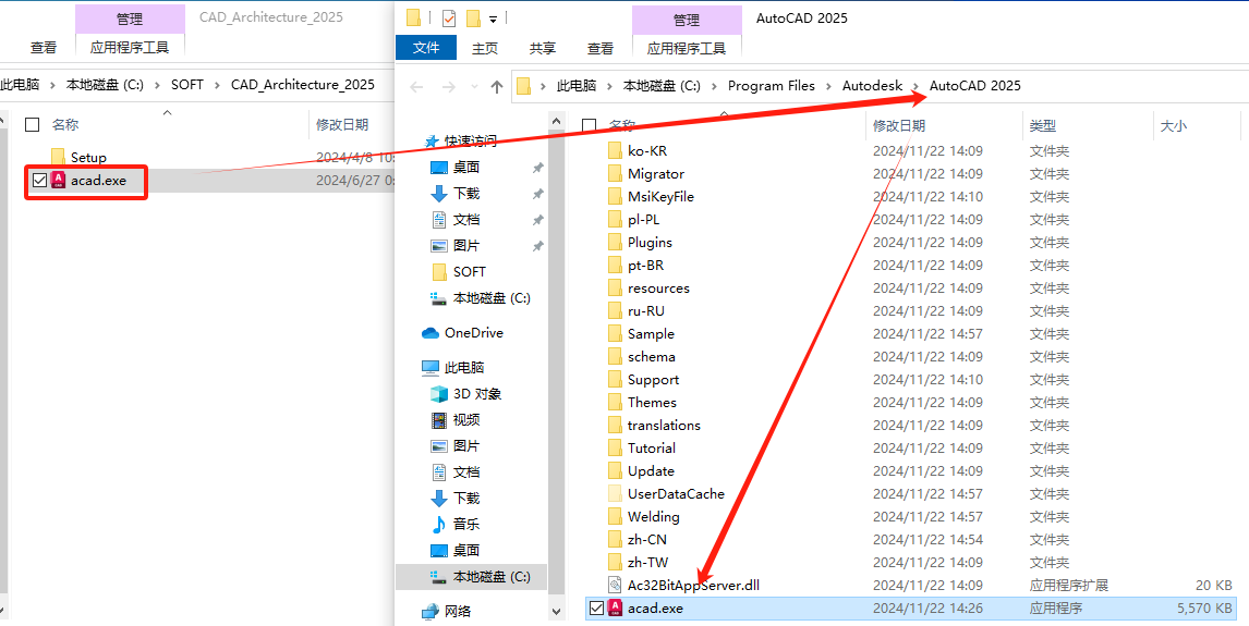 - 补丁安装复制安装包内acad.exe补丁程序复制到软件的安装目录,安装目录通过桌面快捷方式右击-打开文件位置