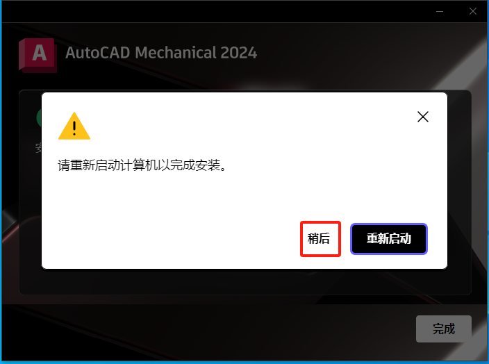 - 安装完成,点击稍后启动