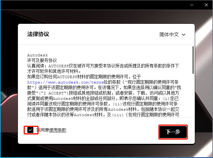 - 勾选‘我同意’,点击下一步