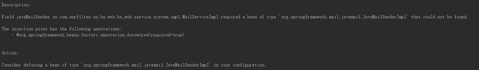 错误一:注入JavaMailSender或JavaMailSenderImpl,启动报错