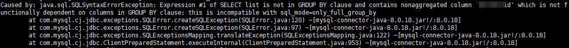 B. 原因:MySQL 5.7.5及以上功能依赖检测功能,如果启用了ONLY_FULL_GROUP_BY SQL模式(默认情况下),MySQL将拒绝选择列表,HAVING条件或ORDER BY列表的查询引用在GROUP BY子句中既未命名的非集合列,也不在功能上依赖于它们;