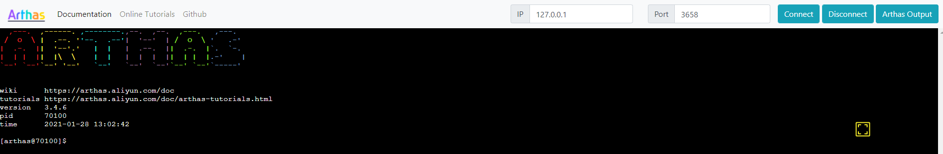 2. windows启动(在arthas目录下执行):as.bat <pid>;