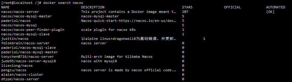 1. 搜索镜像:docker search nacos;