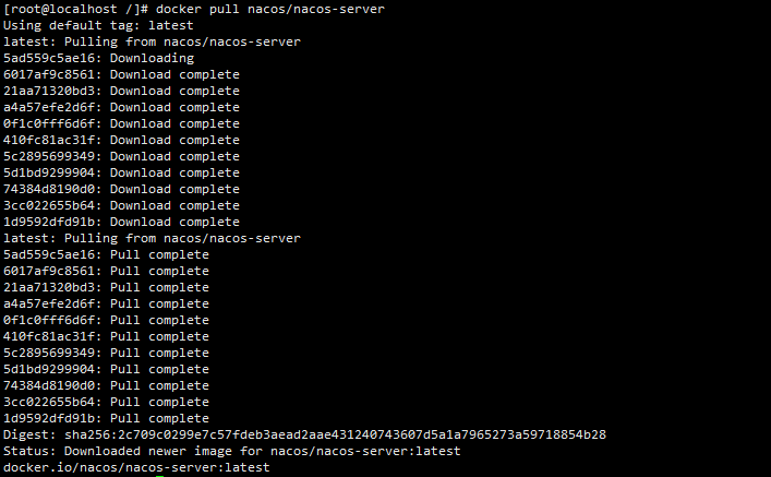 2. 拉取镜像:docker pull nacos/nacos-server:latest;