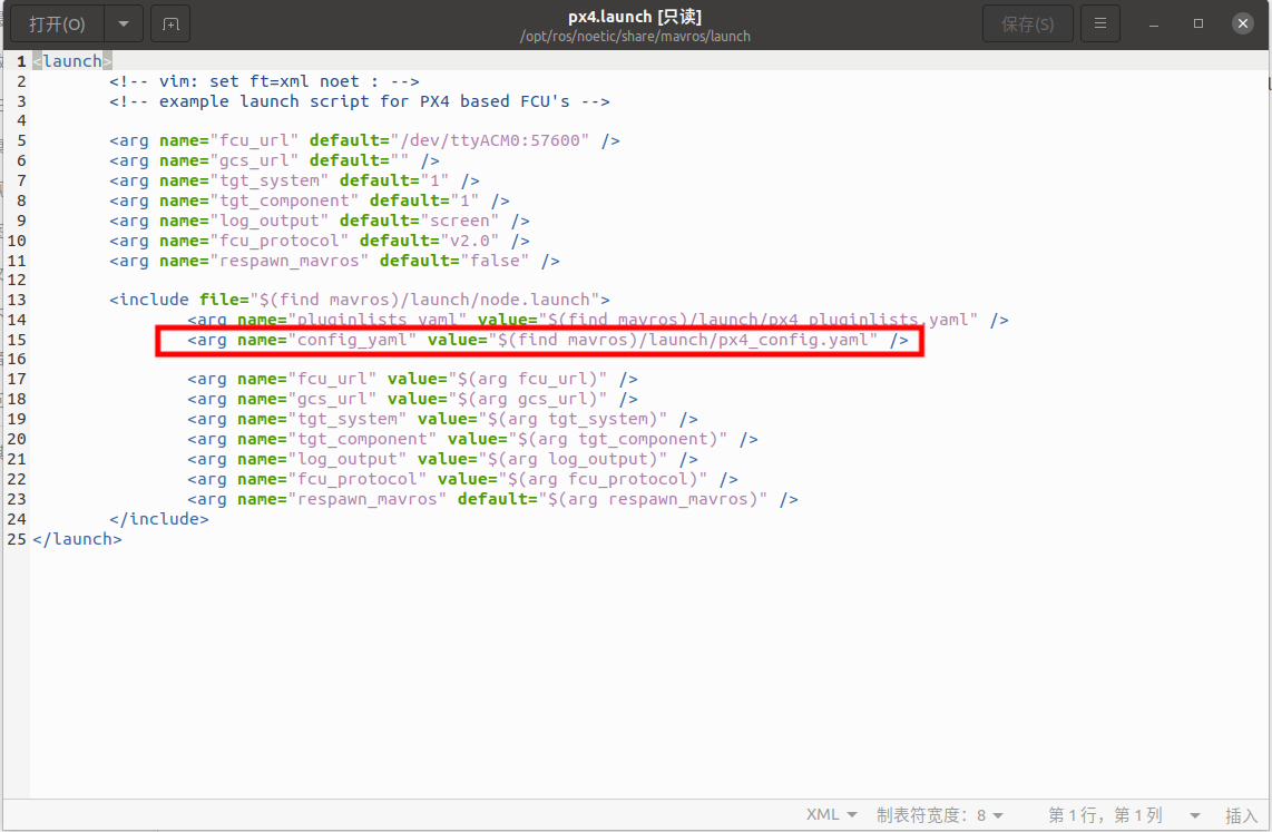 我们找到该路径下的px4.launch文件(/opt/ros/noetic/share/mavros/launch/px4.launch)