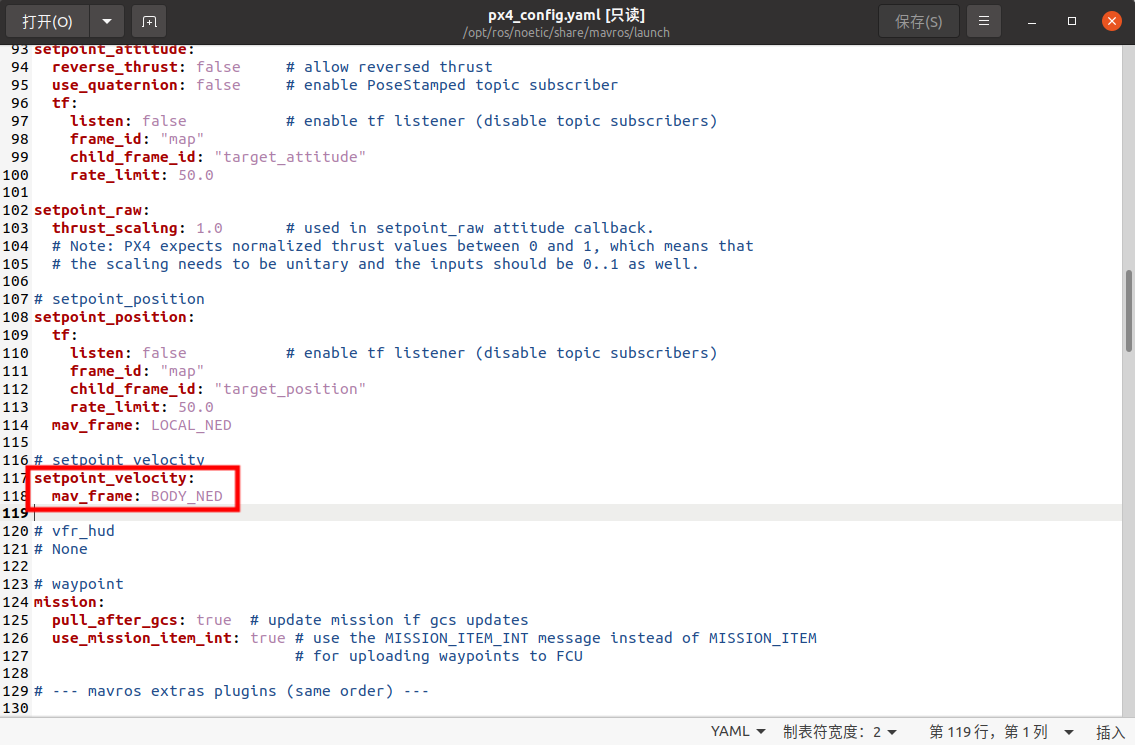 4、修改mavros/setpoint_velocity/cmd_vel坐标系